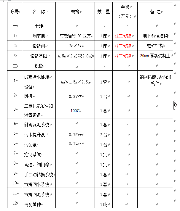 司承諾長期維修。在保修期內(nèi),在污水處理站操作管理人員不能排除故障情況下,應及時通知我方,我公司在接到通知之時起四十八小時內(nèi)到達現(xiàn)場進行處理。在免費保修期內(nèi),我方每季定期回訪一次,協(xié)助污水處理站操作管理人員做好污水處理工程管理工作。在有償維修期內(nèi),我方應向業(yè)主提供設(shè)備及零部件供應商的聯(lián)系地址。屬于正常的維修工作僅收取人工計日工資費主要設(shè)備質(zhì)保一年。